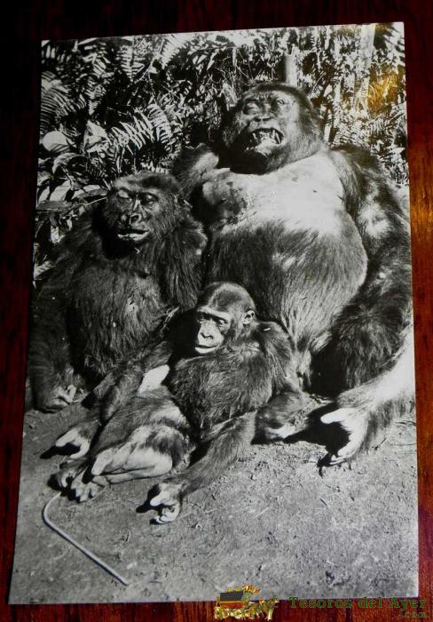 ANTIGUA FOTO POSTAL GUINEA ECUATORIAL ESPAÑOLA - FAMILIA DE GORILAS N. 1 - FOTO CALIFORNIA, BATA - NO CIRCULADA.