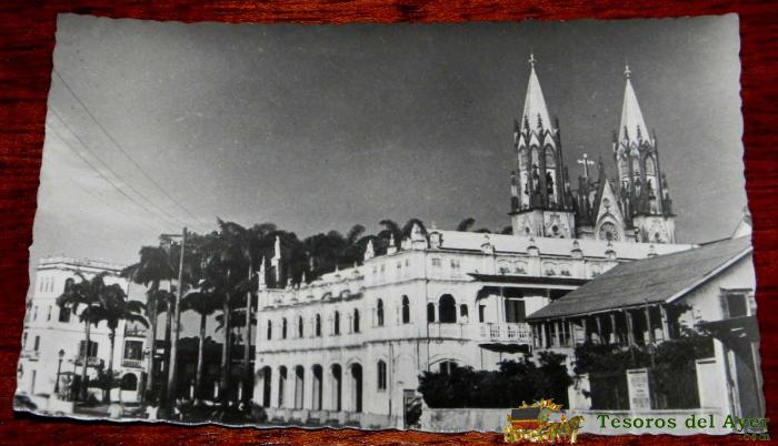 ANTIGUA FOTO POSTAL GUINEA ECUATORIAL ESPAÑOLA - SANTA ISABEL - PALACIO EPISCOPAL Y CATEDRAL - N. 75 - FOTO H. GARCIA - NO CIRCULADA.