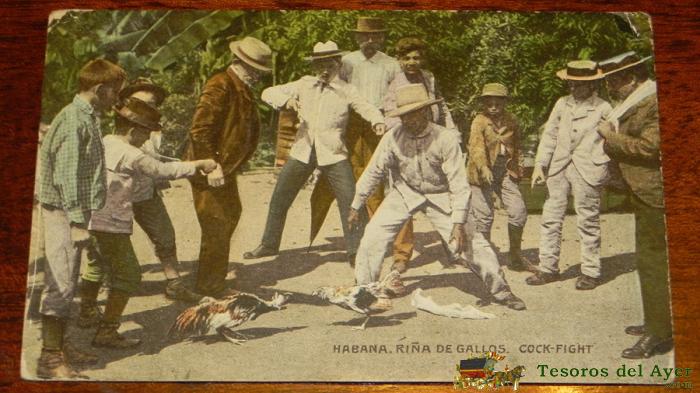 ANTIGUA POSTAL DE CUBA, HABANA, RIÑA DE GALLOS, COCK FIGHT, SIN CIRCULAR,