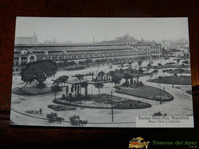 ANTIGUA POSTAL, BUENOS AIRES, PLAZA ONCE Y ESTACION, CIRCUALDA, OLD POST, BUENOS AIRES, ELEVEN SQUARE STATION, CIRCULATED