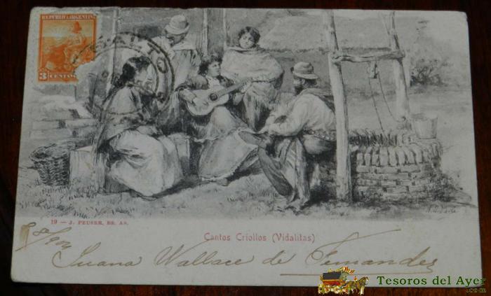 ANTIGUA POSTAL DE ARGENTINA, CANTOS CRIOLLOS, VIDALITAS, CIRCULADA, ED. J. PEUSER, N. 19.