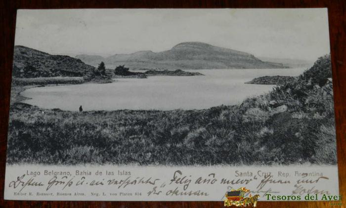ANTIGUA POSTAL DE ARGENTINA, LAGO BELGRANO, BAHIA DELAS ISLAS, CIRCULADA, ED. R. ROSAUER.