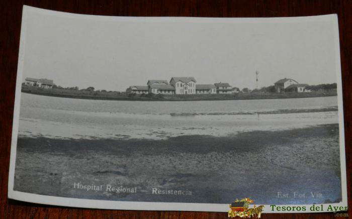 ANTIGUA FOTO POSTAL DE RESISTENCIA (CHACO) ARGENTINA, HOSPITAL REGIONAL, EST FOT. VÍA, SIN CIRCULAR