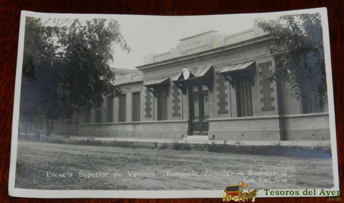 ANTIGUA FOTO POSTAL DE RESISTENCIA (CHACO) ARGENTINA, ESCUELA SUPERIOR DE VARONES BENJAMIN ZORRILA, EST. FOT. VIA, SIN CIRCULAR