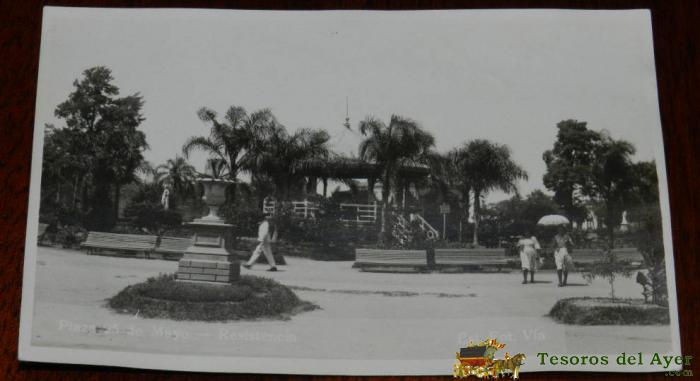 ANTIGUA FOTO POSTAL DE RESISTENCIA (CHACO) ARGENTINA, PLAZA 25 DE MAYO, EST. FOT. VIA, SIN CIRCULAR