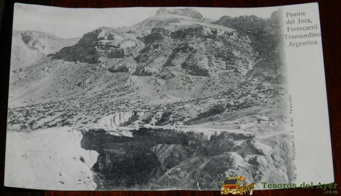ANTIGUA POSTAL DE ARGENTINA, PUENTE DEL INCA, FERROCARRIL TRASANDINO ARGENTINA, N. 59, PROPIEDAD DE J. ALIAN, NO CIRCULADA.