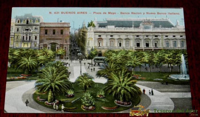 ANTIGUA POSTAL DE BUENOS AIRES (ARGENTINA), PLAZA DE MAYO, BANCO NACION AY NUEVO BANCO ITALIANO, EDICION Z. FUMAGALLI 421, SIN CIRCULAR