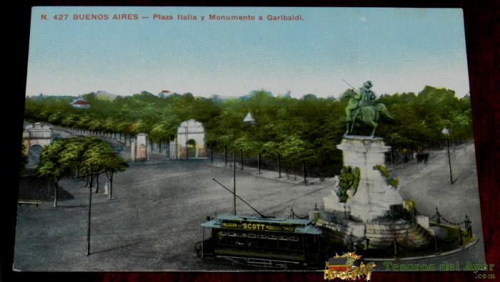 ANTIGUA POSTAL DE BUENOS AIRES (ARGENTINA), PLAZA ITALIA Y MONUMENTO A GARIBALDI, EDICION Z. FUMAGALLI 427, SIN CIRCULAR