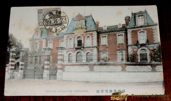 POSTAL DE YOKOHAMA FRENCH CONSULATE, CIRCULADA EN 1923 A MARSELLA