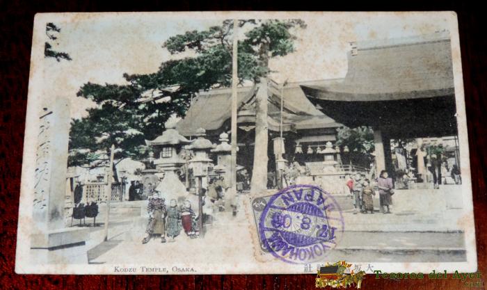 POSTAL DE OSAKA, KODZU TEMPLE, CIRCULADA EN 1908 A MARSELLA