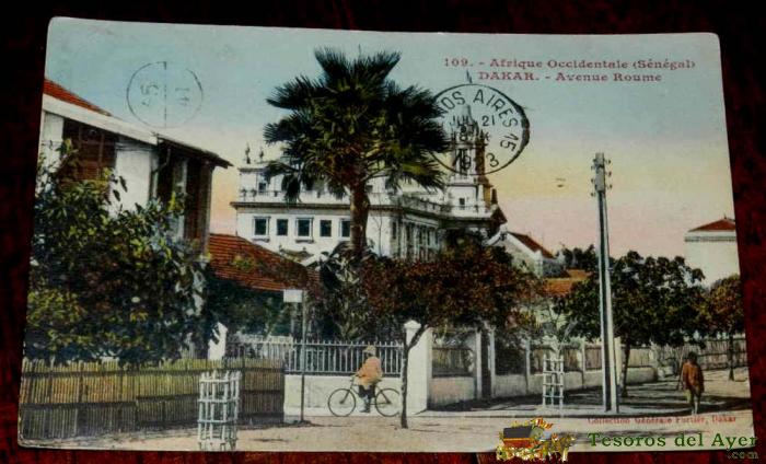 ANTIGUA POSTAL DE DAKAR, SENEGAL, AVENIDA ROUME, N. 109, CIRCULADA EN 1923, ED. COLLECTION GENERALE FORTIER, DAKAR.