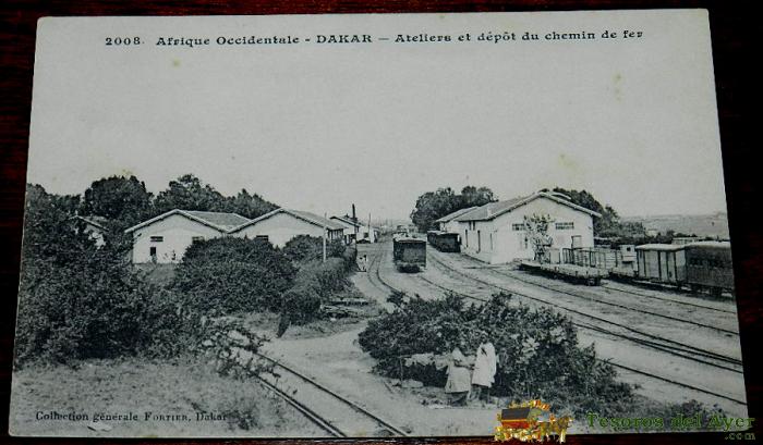 ANTIGUA POSTAL DE DAKAR, SENEGAL, AFRIQUE OCCIDENTALE, N. 2008, ESTACION DE FERROCARRIL, COLLECTION GENERALE FORTIER, NO CIRCULADA.