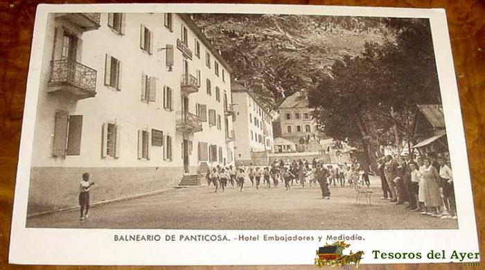ANTIGUA POSTAL DE BALNEARIO DE PANTICOSA - HOTEL EMBAJADORES Y MEDIODIA - CIRCULADA - ED. ARRIBAS.
