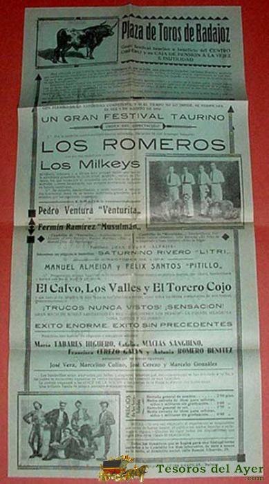 ANTIGUO CARTE TARUINO DE LA PLAZA DE TOROS DE BADAJOZ DE 5 DE AGOSTO DE 1934 . REPUBLICA - BENEFICIO AL CENTRO OBRERO. TAL COMO SE VE EN LA FOTO - MIDE 43 X 21 CMS.