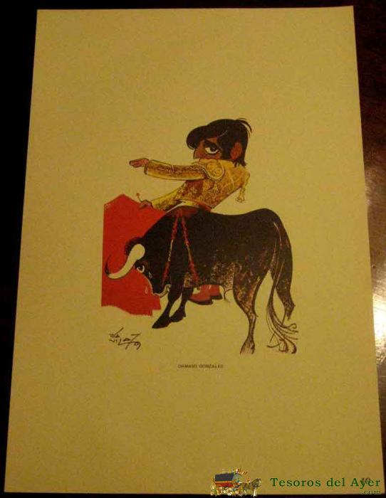 CARICATURA DEL TORERO DAMASO GONZALEZ - REALIZADA POR JOSE LUIS DAVILA - GRAN TAMAÑO PARA ENMARCAR DE 47 X 32 CMS.