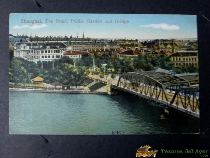 ANTIGUA POSTAL, SHANGHAI, EL BUND, JARDIN PUBLICO Y EL PUENTE, NO CIRCULADA