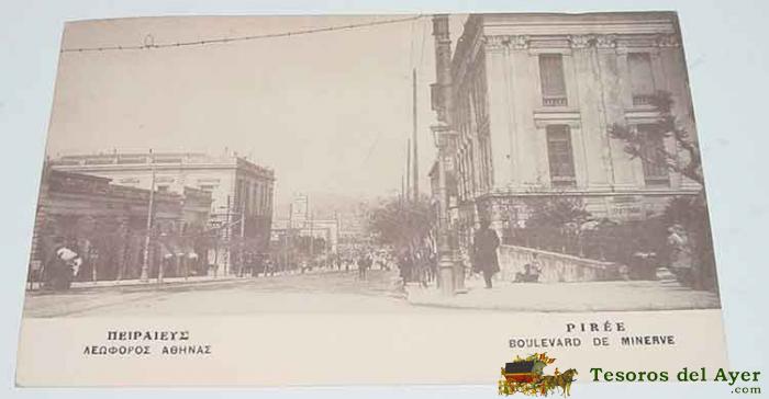ANTIGUA POSTAL DE PIREE - BOULEVARD DE MINERVE - GRECIA - CIRCULADA.
