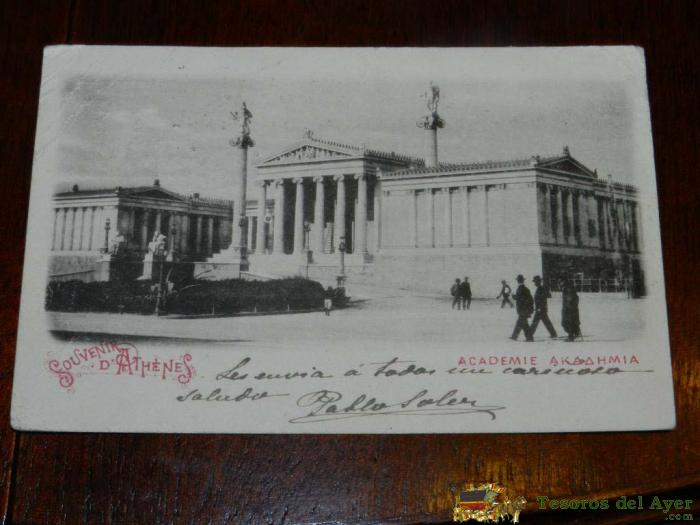 ANTIGUA FOTO POSTAL, ATENAS, ACADEMIA, CIRCULADA, OLD PHOTO POSTCARD, ATHENS, ACADEMY, CIRCULATED