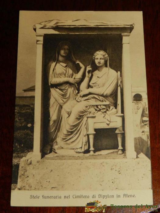 ANTIGUA FOTO POSTAL, ATENAS, ESTATUA FUNERARIA EN EL CEMENTERIO DE DIPYLON, SIN CIRCULAR, OLD PHOTO POSTCARD, ATHENS, FUNERARY STATUE IN THE CEMETERY OF DIPYLON, UNCIRCULATED