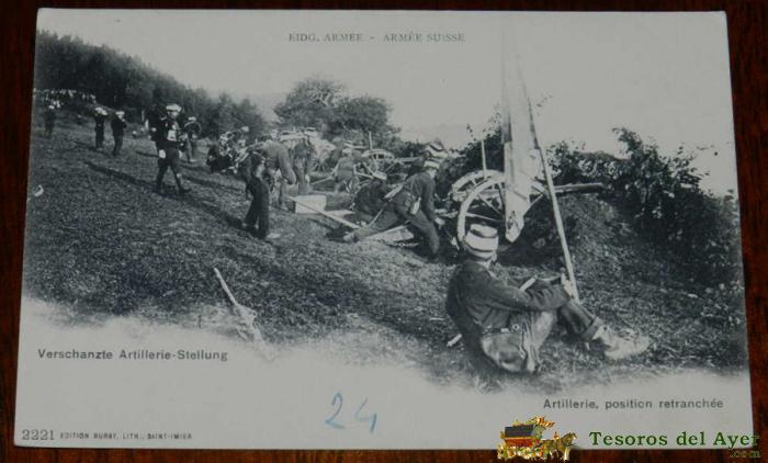 ANTIGUA POSTAL DE LA ARMADA SUIZA, VERSCHANZTE ARTILLERIE - STELLUNG, ED. BURGY, NO CIRCULADA.