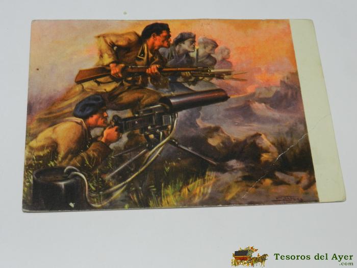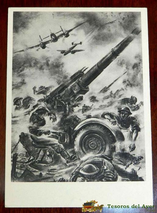 POSTAL ATAQUE AEREO ALEMAN A UN PUESTO ANTIAEREO INGLES, II GUERRA MUNDIAL, MIDE 14,5 X 10,5 CM