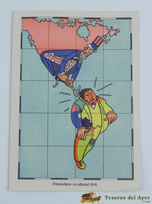 POSTAL ANTIGUA SATIRICO POLITICA, USA AHORCANDO A AMERICA DE SUR, HEMISFERIO OCCIDENTAL 1941, NO PONE EDITOR, NO CIRCULADA.