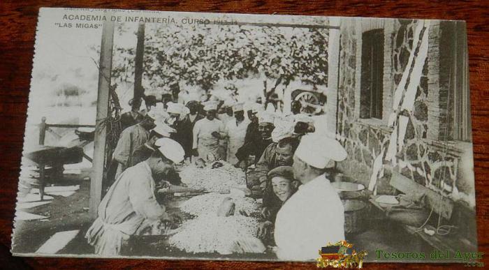 POSTAL DE LA ACADEMIA DE INFANTERÍA. CURSO 1913-14. COCINA, COCINEROS, LAS MIGAS. GABINETE FOTOGRÁFICO CARMONA, NO CIRCULADA.