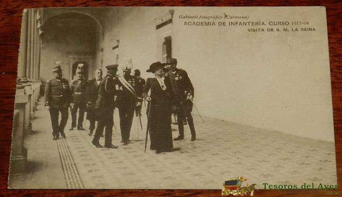 ANTIGUA POSTAL DE ACADEMIA INFANTERIA CURSO 1913 - 14 - VISITA DE S.M. LA REINA - NO CIRCULADA.