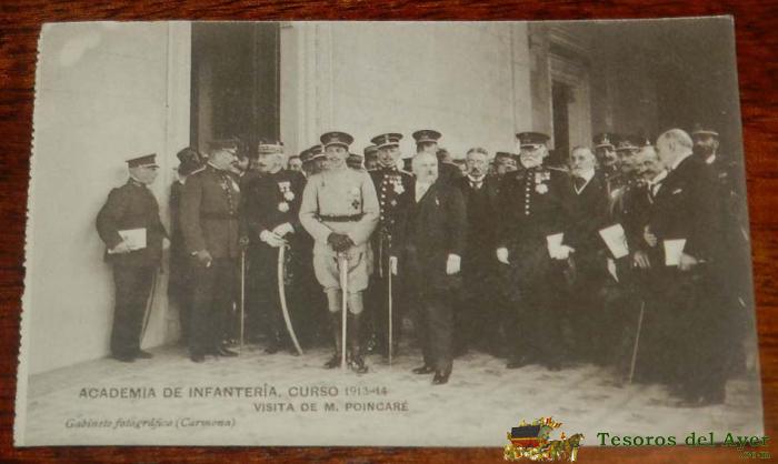 ANTIGUA POSTAL S.M. ALFONSO XIII, VISITA DE M. POINCARE - ACADEMIA DE INFANTERIA 1913 - 14 - NO CIRCULADA - GABINETE FOTOGRAFICO CARMONA - NO CIRCULADA - ESCRITA.