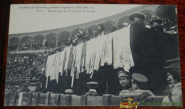POSTAL DE ACADEMIA DE INFANTERIA DE TOLEDO, PRESIDENTAS FESTIVAL JURA, N.5, GABINETE FOTOGRAFICO 1912, NO CIRCULADA, ESCRITA.
