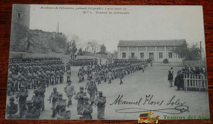 POSTAL DEL GABINETE FOTOGRáFICO DE LA ACADEMIA DE INFANTERíA. ACADEMIA DE INFANTERíA. Nº 7. EXAMEN DE INSTRUCCIóN. CURSO 1912 - 1913. PELáEZ. TOLEDO. ESCRITA Y FIRMADA POR UN MILITAR DE LA PROMOCIóN.