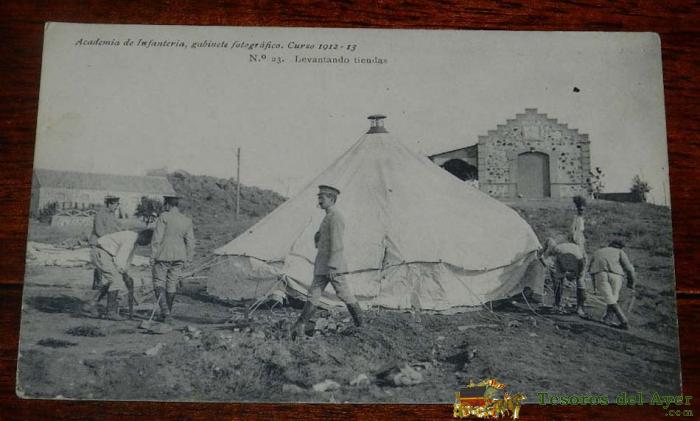 ANTIGUA POSTAL NUM. 23 LEVANTADO TIENDAS - ACADEMIA DE INFANTERIA DE TOLEDO, GABINETE FOTOGRAFICO 1912 - 1913 - PELAEZ - SIN CIRCULAR