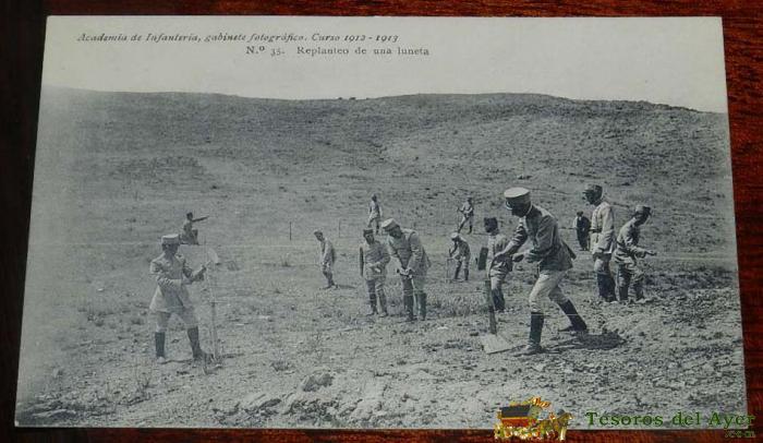 POSTAL DEL GABINETE FOTOGRáFICO DE LA ACADEMIA DE INFANTERíA DE TOLEDO, REPLANTEO DE UNA LUNETA, N. 35. AñO 1912-13, PELáEZ. TOLEDO. NO CIRCULADA. ESCRITA Y FIRMADA POR UN MILITAR DE LA PROMOCIóN.