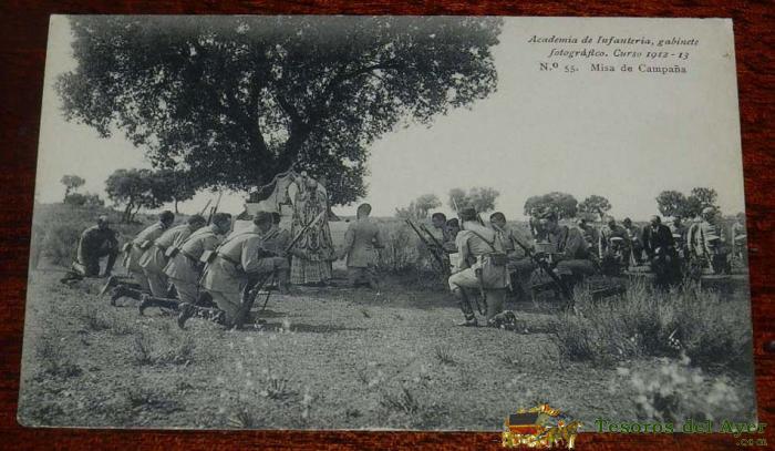 ANTIGUA POSTAL DE LA ACADEMIA DE INFANTERIA, GABINETE FOTOGRAFICO - CURSO 1912 / 13 - N. 55 - MISA DE CAMPAÑA - NO CIRCULADA - ED. PELAEZ.