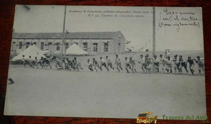 POSTAL ACADEMIA DE INFANTERíA DE TOLEDO, GABINETE FOTOGRáFICO CURSO 1912-13, CARRERA DE VELOCIDAD, N. 44, CARRERA DE VELOCIDAD, SALIDA.