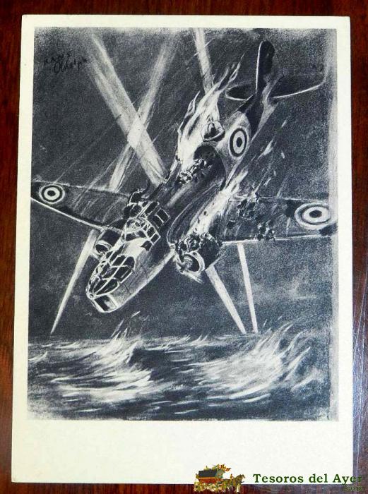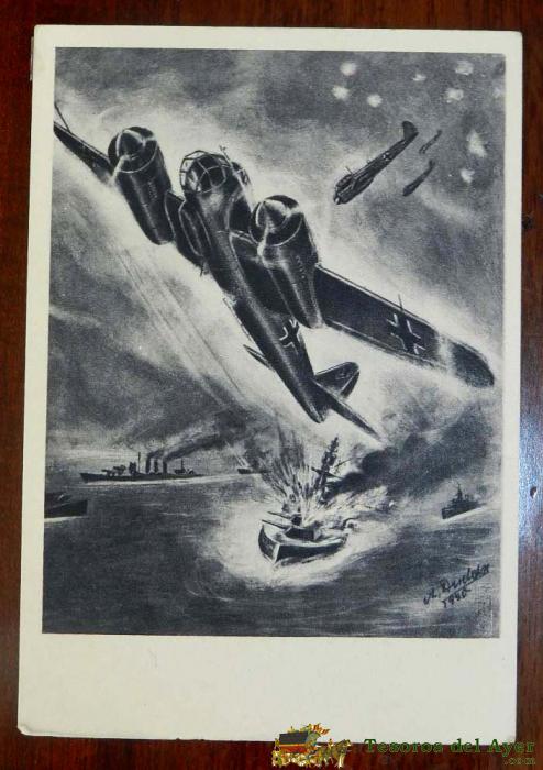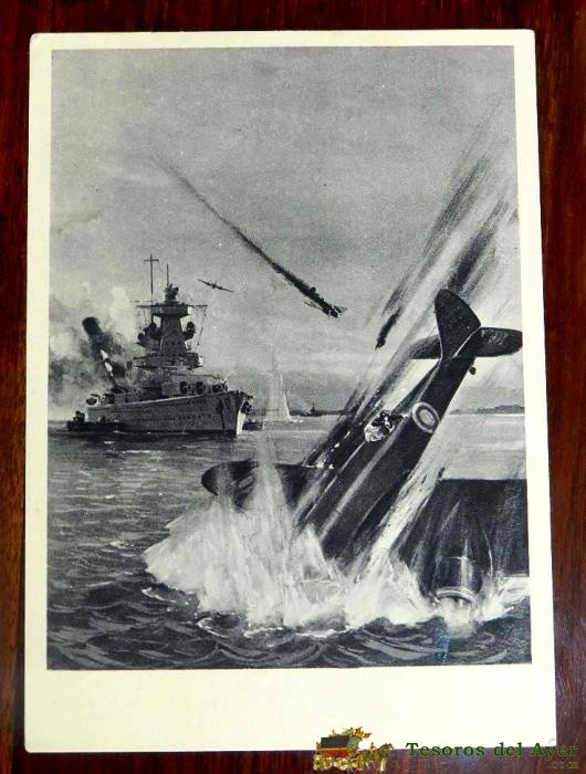 POSTAL ATAQUE AEREO ALEMAN A UN TRANSPORTE DE TROPAS INGLES, II GUERRA MUNDIAL, MIDE 14,5 X 10,5 CM