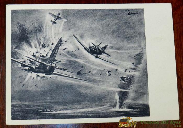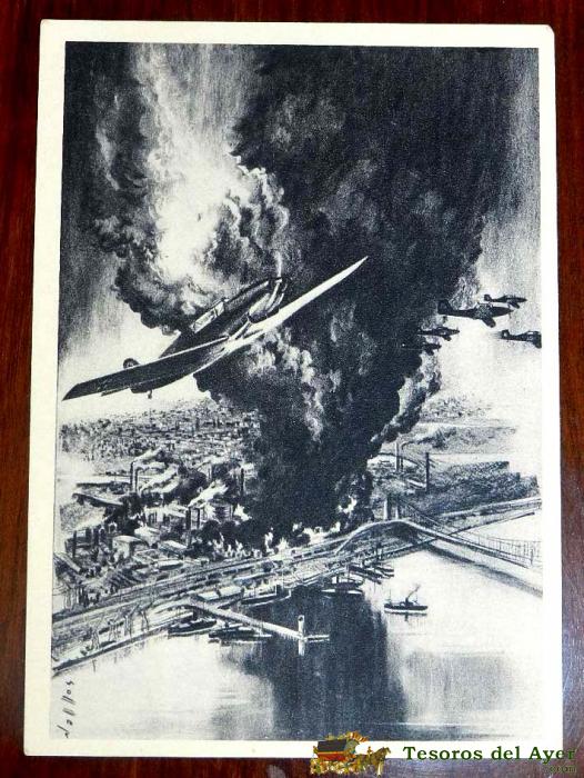 POSTAL AVIONES ALEMANES ATACANDO FABRICAS DE ARMAMENTO E INSTALACIONES DE PUERTO INGLESAS, II GUERRA MUNDIAL, MIDE 14,5 X 10,5 CM