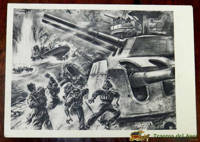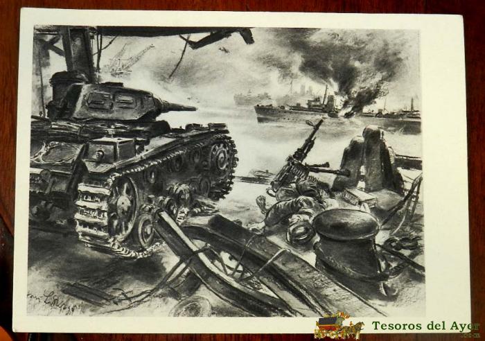 POSTAL CARRO DE ASALTO ALEMAN CAÑONEA UNIDADES DE LA FLOTA INGLESA, II GUERRA MUNDIAL, MIDE 14,5 X 10,5 CM