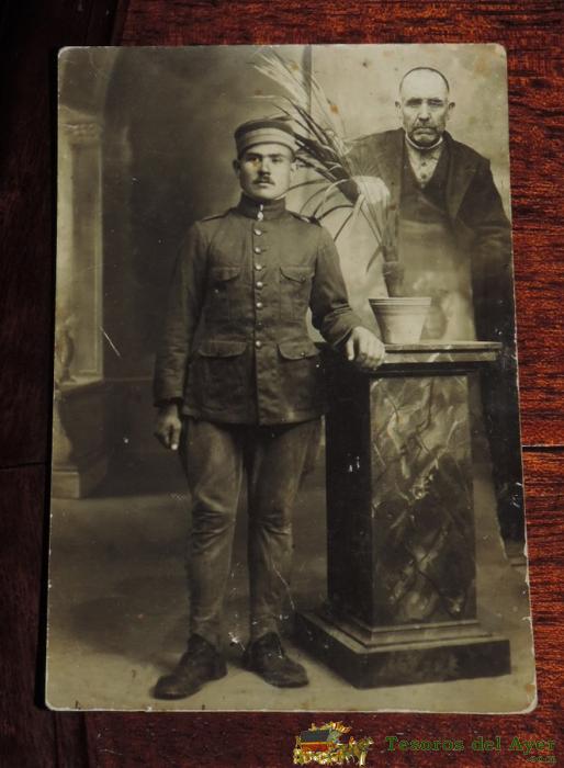 FOTO POSTAL DE MILITAR CON MONTAJE DE LA IMAGEN DEL PADRE FALLECIDO, NO CIRCULADA.