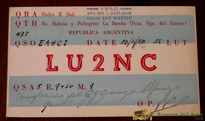 ANTIGUA TARJETA QSL . LU2NC - ARGENTINA - AÑOS 50