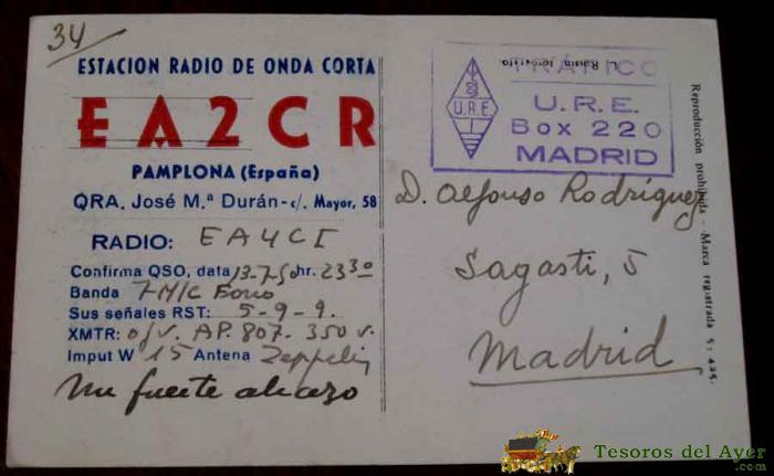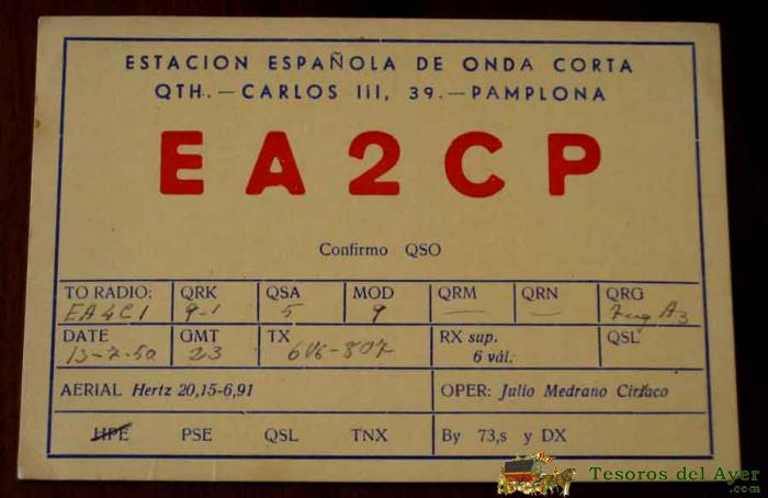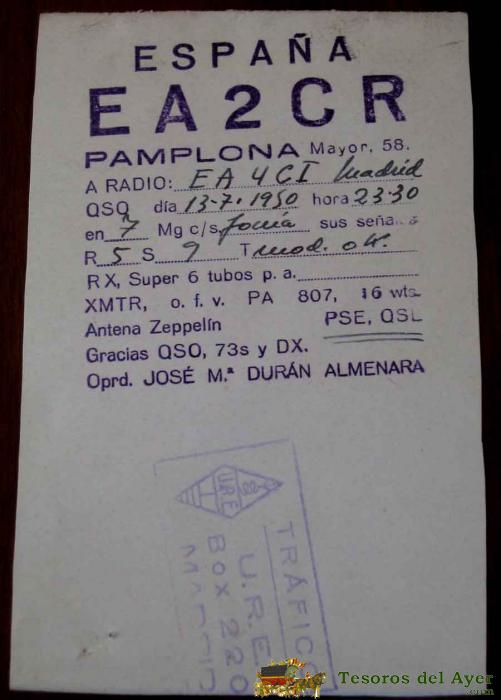 ANTIGUA TARJETA QSL - EA2CR - PAMPLONA - AÑOS 50