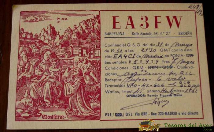ANTIGUA TARJETA QSL . EA3FW - BARCELONA - AÑOS 50