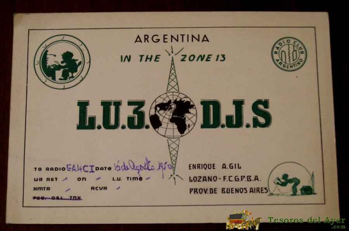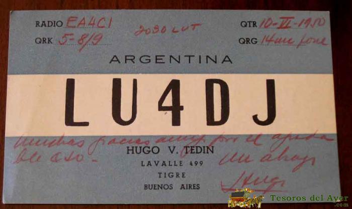 ANTIGUA TARJETA QSL . LU4DJ - ARGENTINA - AÑOS 50