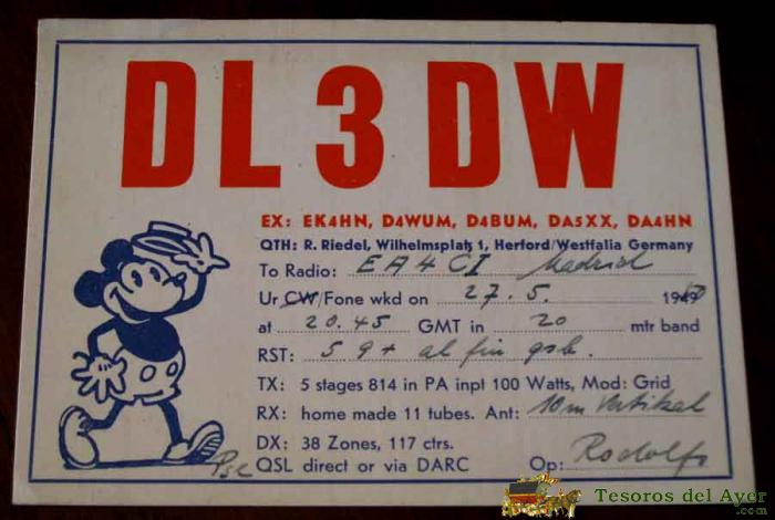 ANTIGUA TARJETA QSL . DL3DW . ALEMANIA - AÑOS 50