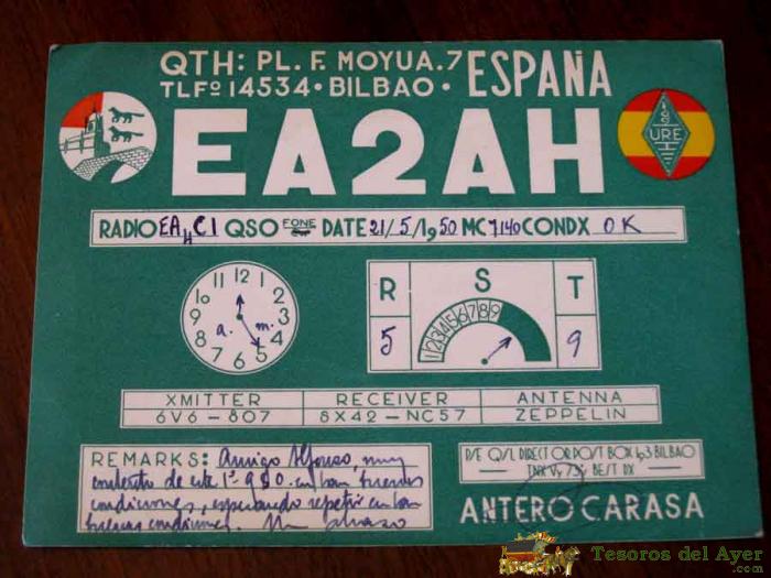 ANTIGUA TARJETA QSL . EA2AH - BILBAO - AÑOS 50