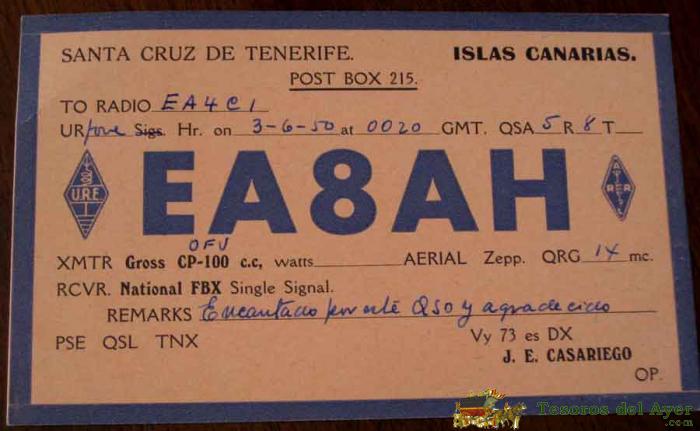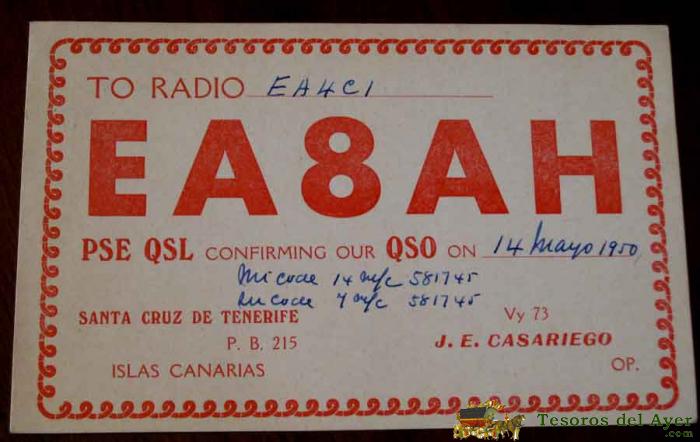 ANTIGUA TARJETA QSL . EA8AH - SANTA CRUZ DE TENERIFE - AÑOS 50