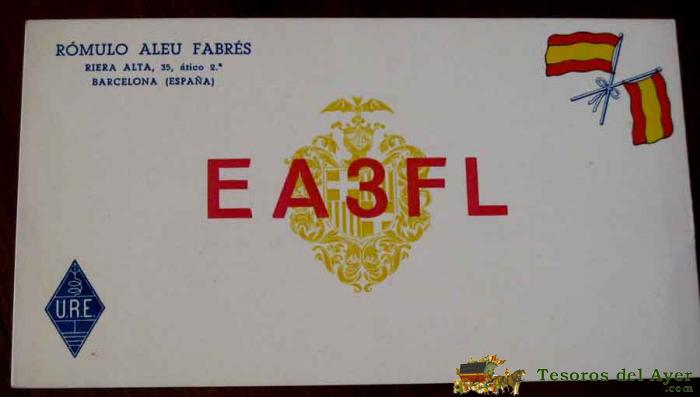 ANTIGUA TARJETA QSL . EA3FL . BARCELONA - AÑOS 50