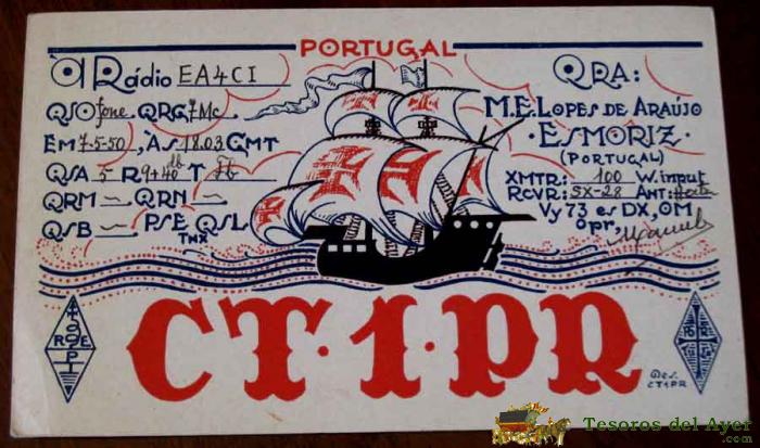 ANTIGUA TARJETA QSL . CT1PR - PORTUGAL - AÑOS 50