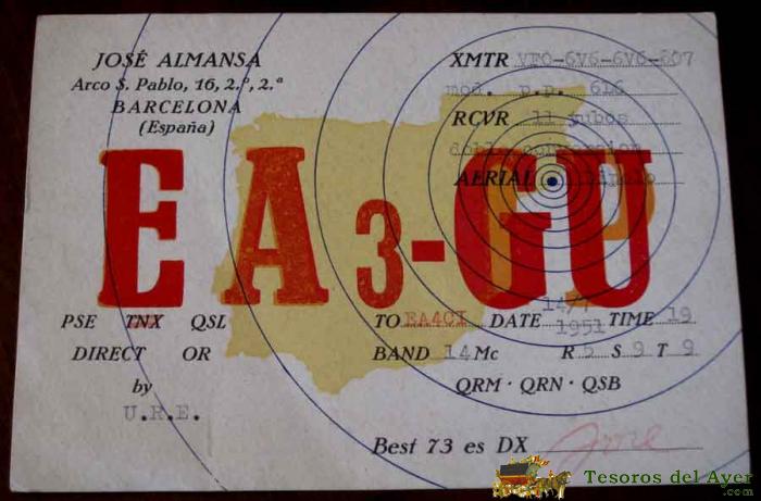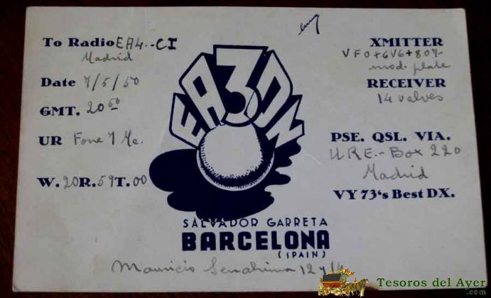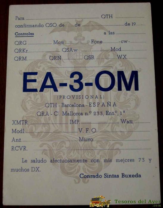 ANTIGUA TARJETA QSL . EA3OM - BARCELONA - AÑOS 50