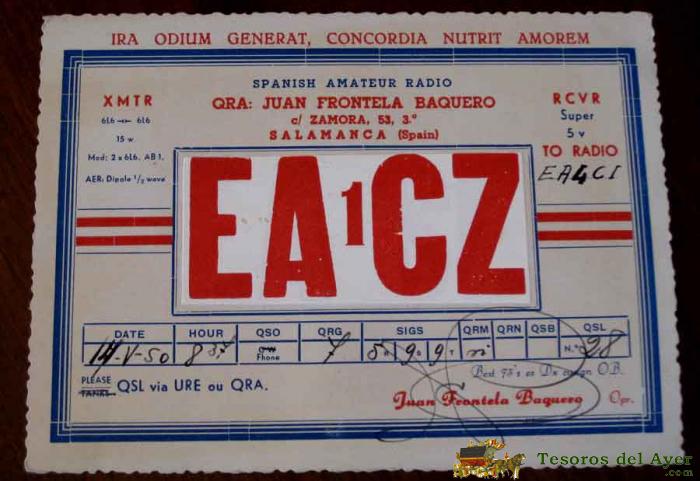 ANTIGUA TARJETA QSL . EA1ZC - SALAMANCA - AÑOS 50